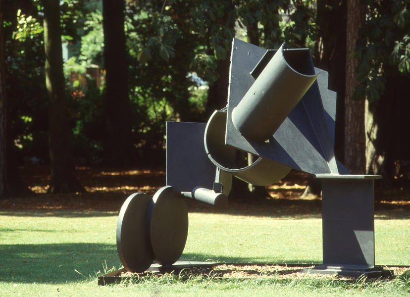 Following sculptures such as Drum Solo or Bone China, Foster made a series of smaller plinth-based works, whose parts were drawn from cut and mangled fragments of gas cylinders. This incorporation of a basic part of the steel-sculptor’s cutting and welding equipment is an example of the wit which underlay some of Foster’s art. The cylinders provided readymade volumes, sometimes flattened out into concave or convex planes, and ending in smooth profiles where the steel folds over itself, or jagged ones where it has been roughly sheared. There is a clear relationship with the arrangements of still-life painting - to its objects, and to the drapery which is used to frame these objects. The ambiguity between these two states, particularly in relation to scale, is important in allowing the fragments to give the sculptures a sense of dynamism beyond the literal.